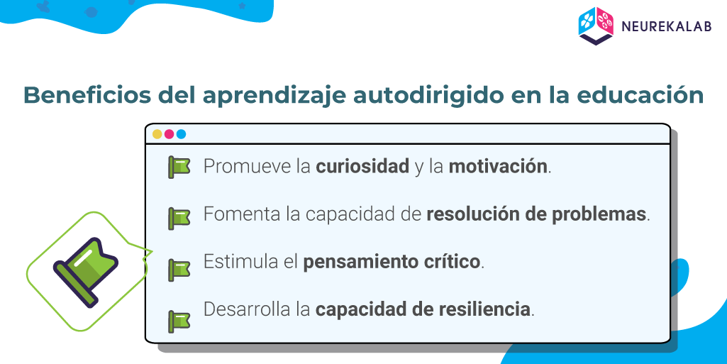 - Estimula el pensamiento crítico. El aprendizaje autodirigido plantea un entorno en que el estudiante tome control de su formación, planificando, ejecutando y evaluando su proceso educativo.