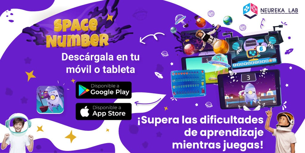 Desde NeurekaLAB hemos desarrollado NeurekaNUM, un método gamificado validado científicamente que permite trabajar desde casa las dificultades matemáticas y la discalculia en niños y niñas de entre 5 y 8 años. Para una experiencia más enriquecedora, presentamos Space Number, la aplicación para móvil y tableta disponible para Android y iOS, con la cual los niños podrán jugar mientras aprenden en cualquier lugar y en cualquier momento. Ofrece diferentes actividades, entre ellas la tarea de estimación de la línea numérica mental, para trabajar las secuencias, las habilidades visuoespaciales y las magnitudes.